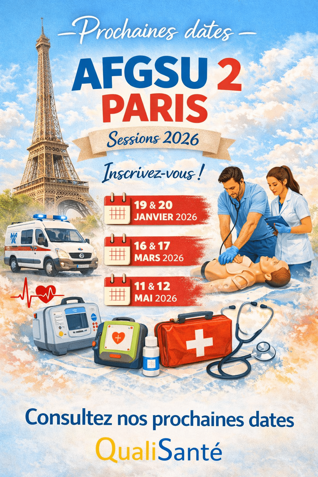 Calendrier des prochaines dates AFGSU 2 – Paris et Île-de-France 2026